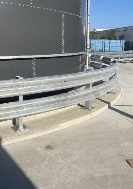 Handrail, pedestrian barriers, and safety infrastructure for industrial sheds and car parks.